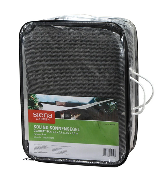 Gefertigt aus HDPE-Gewebe, hochverdichtetem Polyethylen, bietet das Sonnensegel bis zu 95 Prozent Schutz vor schädlicher UV-Strahlung. Die offene Gewebestruktur ist dennoch ausreichend luftdurchlässig und erlaubt, dass Sie Ihr Sonnensegel von März bis September nutzen können. Das hochwertige Material hält nicht nur intensiver Sonneneinstrahlung stand, auch stärkerer Wind kann ihm nichts anhaben. Zudem ist es durchlässig für Wasser, sodass sich bei Regen keine lästigen Wassersäcke bilden. Zum Lieferumfang gehören, neben dem Sonnensegel, Befestigungsringe aus Edelstahl und eine praktische Aufbewahrungstasche. Der nächste Sommer kommt bestimmt! Holen Sie sich rechtzeitig Ihr Siena Garden Sonnensegel Solino Quadrat.